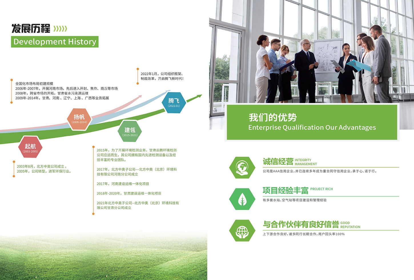 北方中奧將始終堅持“監測儀器智能化、環保產品系列化、運維服務網絡化”的理念,充分發揚自身優勢,不斷創新,打造全方位專業化第三方環境監測服務商!